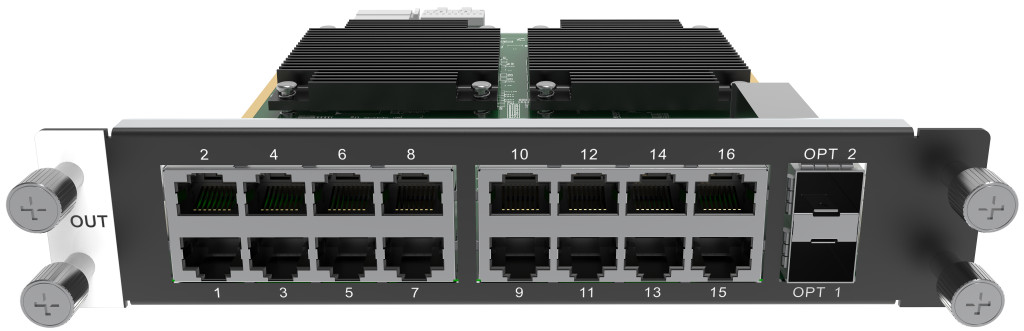 − OPT 2 copies and outputs the data on Ethernet ports 9–16.
