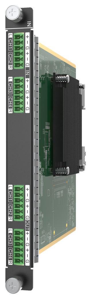 Single channel: 4x phoenix audio inputs, 4x phoenix audio outputs